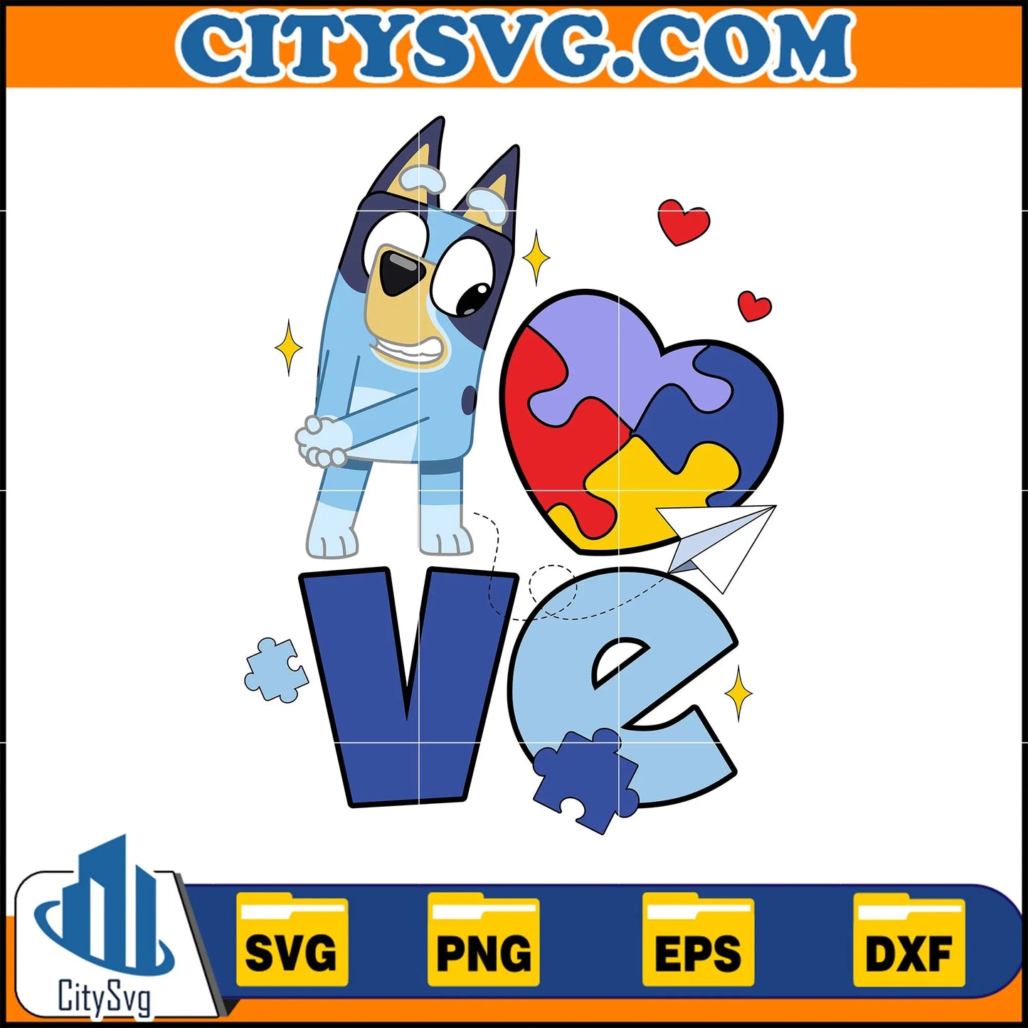 Bluey Love Autism Svg, Funny Dog And Friends, Character Cartoon Friends, Instant Download
