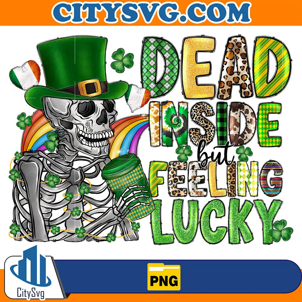 Skeleton Dead Inside But Feeling Lucky St Patricks Day Sublimation Png